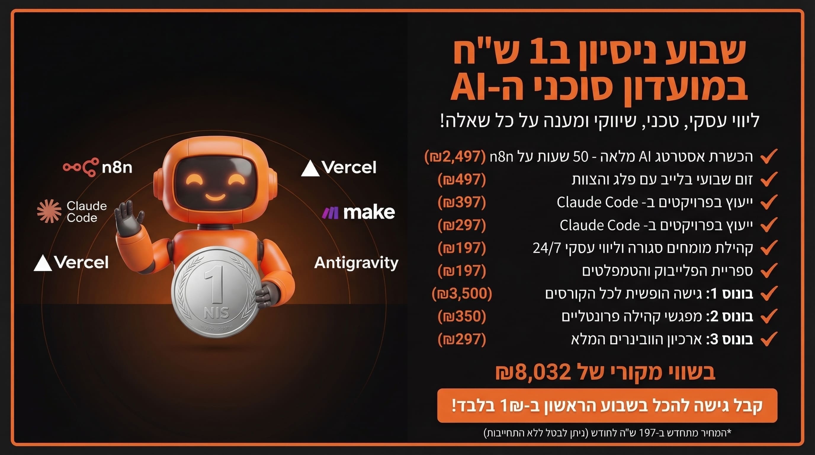 הקהילה הכי חיה בישראל ל-AI Agents ו-No-Code.